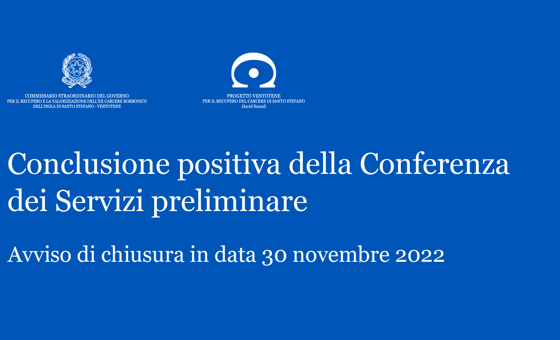 Conclusione positiva della Conferenza dei Servizi preliminare. Avviso di chiusura in data 30 novembre 2022