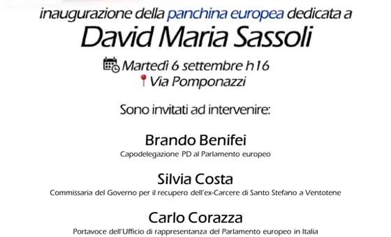 Oggi alle ore 16:00 verrà inaugurata a Roma, in via Pomponazzi, la Panchina europea dedicata a David Sassoli.