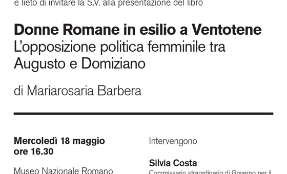 Il libro "Donne romane esiliate a Ventotene", scritto dalla Prof.ssa Maria Rosaria Barbera ed edito dalla casa editrice Ultima Spiaggia di Fabio Masi, è stato presentato a Roma mercoledì 18 maggio nella prestigiosa sede di Palazzo Massimo.